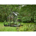 Stijlvolle en compacte zwarte tuinkas met sterk aluminium Qube‑profiel en veiligheidsglas (ca. 3 mm). Voorzien van lage drempel en schuifdeur voor makkelijke toegang, ideaal voor groenten, kruiden en bloemen.