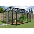 De Victoria Full Option tuinkas (300x600 cm, h 180/250 cm) met zwart aluminium frame, veiligheidsgla