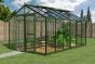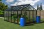 Deze tuinkas is uitgerust met een full option concept. Dus alles wat te bedenken is zit standaard op deze kas! Zowel de serre als de fundering zijn gemaakt uit stevig aluminium. Deze tuinkas wordt standaard geleverd met helder 4mm veiligheidsglas. In het dak kan kan helder veiligheidsglas of gehamerd veiligheidsglas.